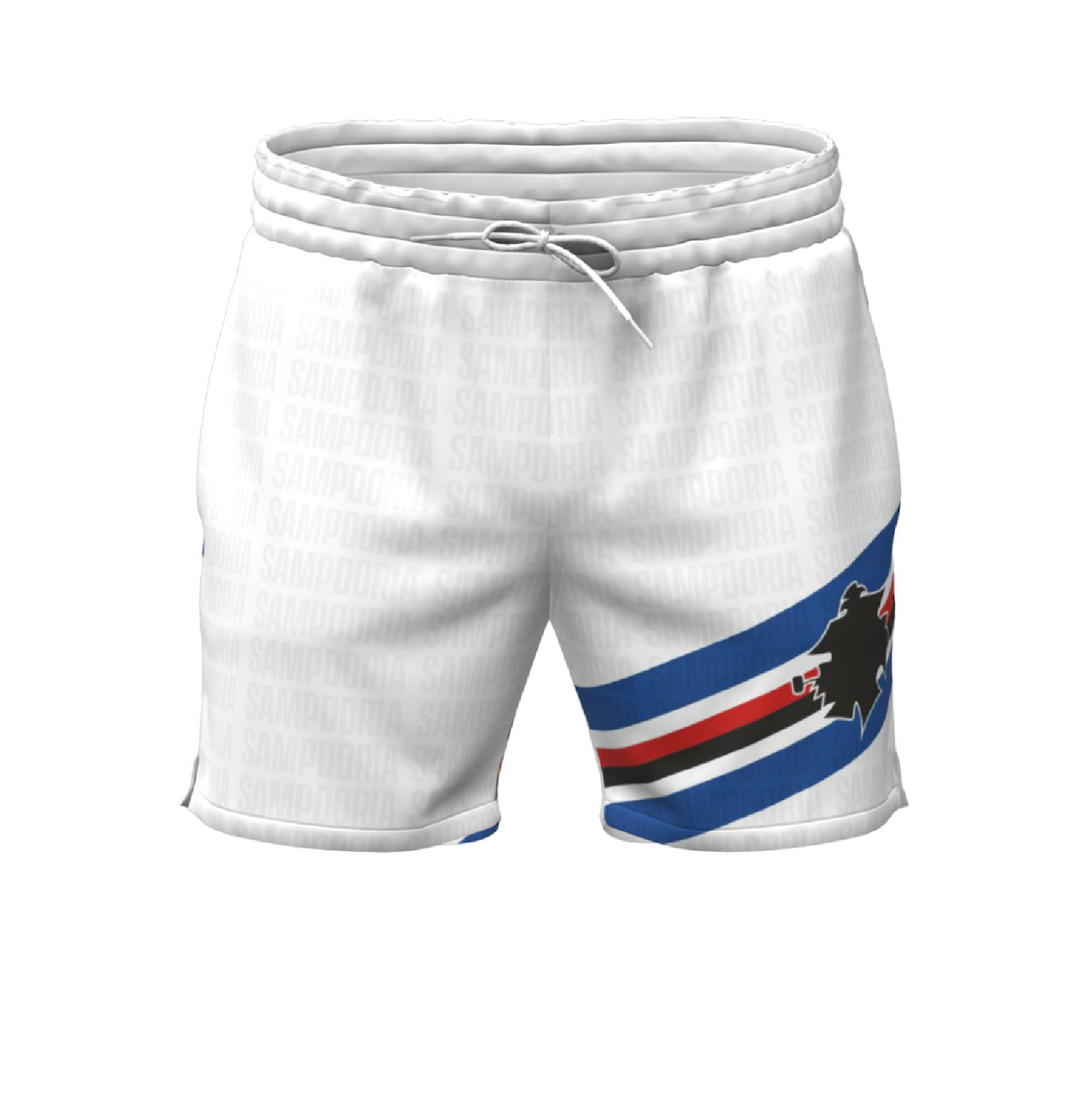 Boxer mare Sampdoria 2025 in sublimazione a mezza gamba. Elastico in vita e tessuto elasticizzato per una perfetta vestibilità ed un grande comfort. Laccio di regolazione tubolare con puntale. Passaggio laccio con occhiello. Slip interno in tessuto morbido ed elasticizzato.