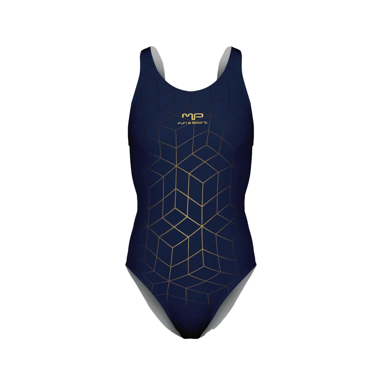 Costume intero donna in sublimazione con sgambatura media e cuciture rinforzate. Foderato fronte retro.