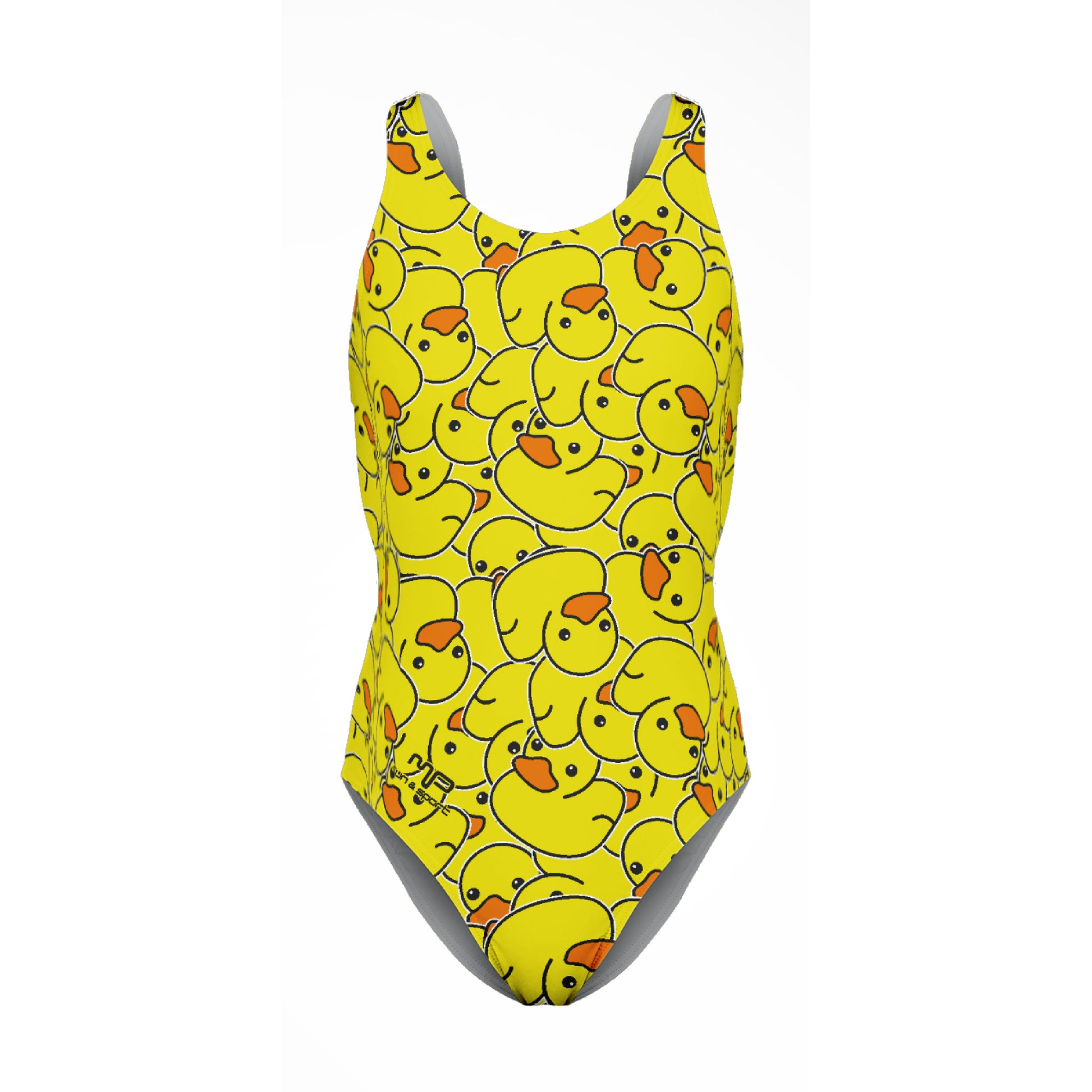 Costume intero donna in sublimazione con sgambatura media e cuciture rinforzate. Foderato fronte retro.