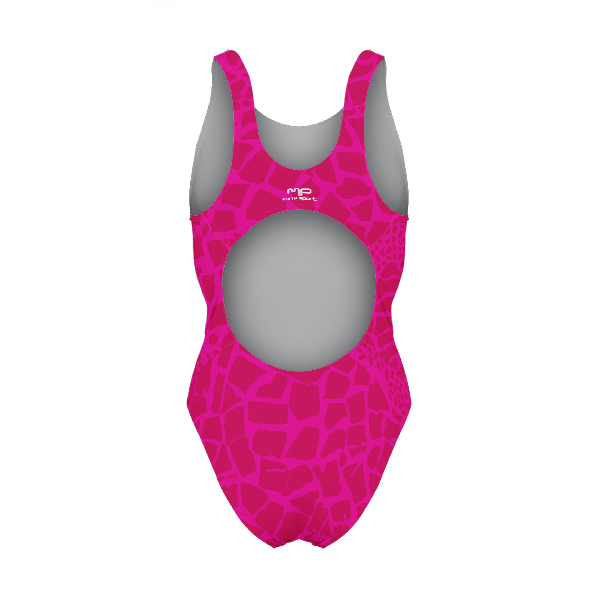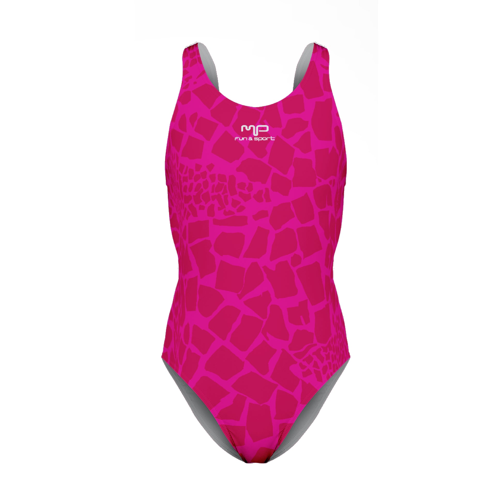 Costume intero donna in sublimazione con sgambatura media e cuciture rinforzate. Foderato fronte retro.