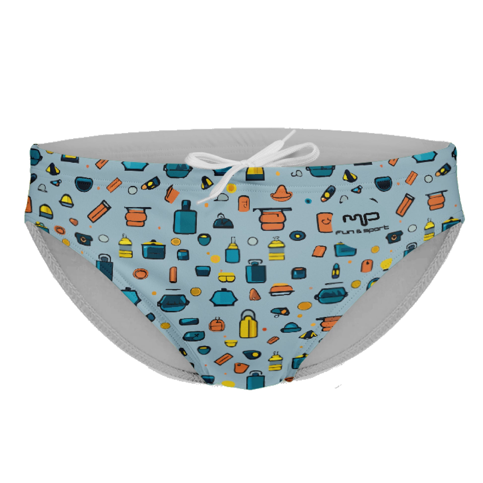 Slip nuoto in sublimazione con vita bassa e cuciture rinforzate. Foderato fronte retro. Piattina da 6 mm per la regolazione.