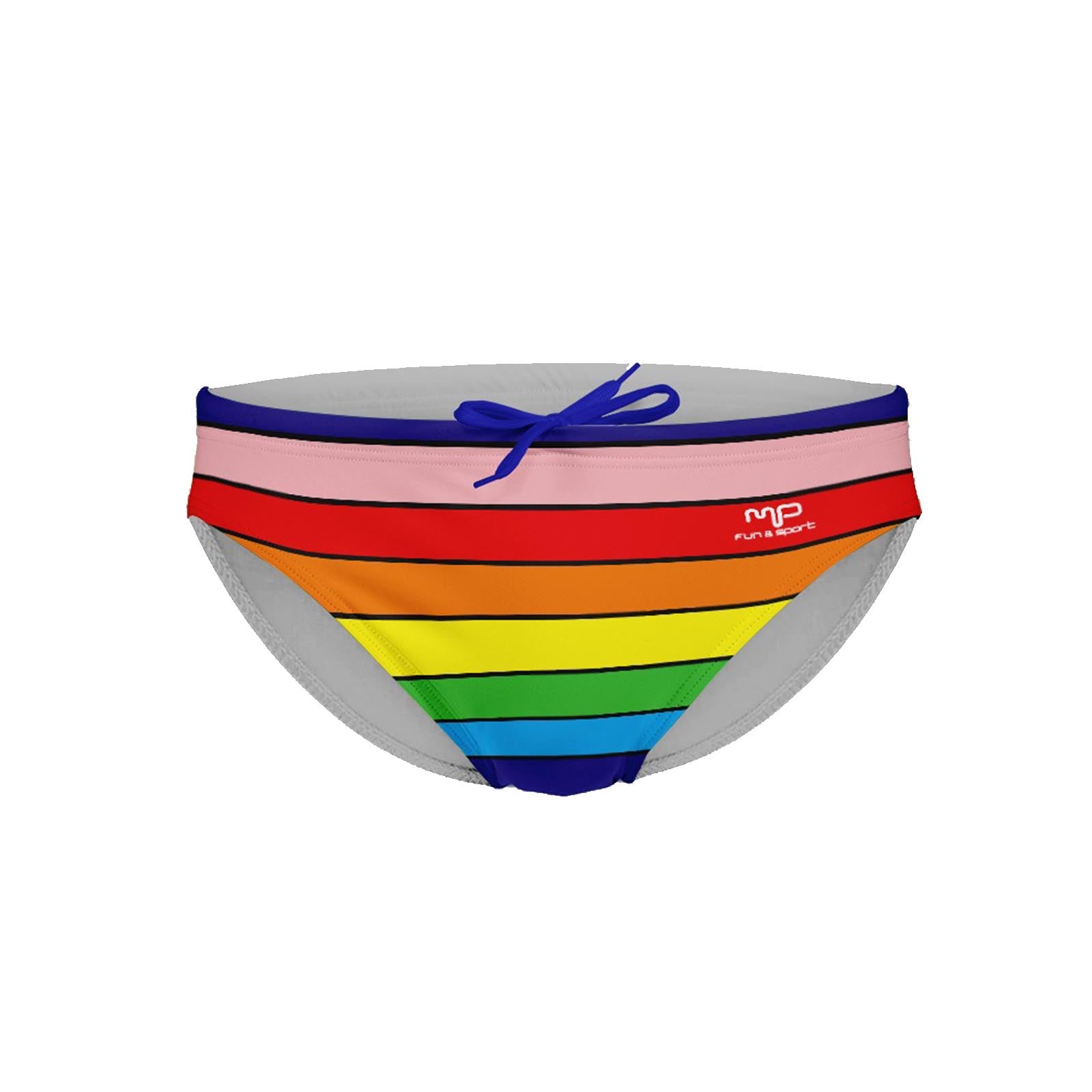 Slip nuoto in sublimazione con vita bassa e cuciture rinforzate. Foderato fronte retro. Piattina da 6 mm per la regolazione.