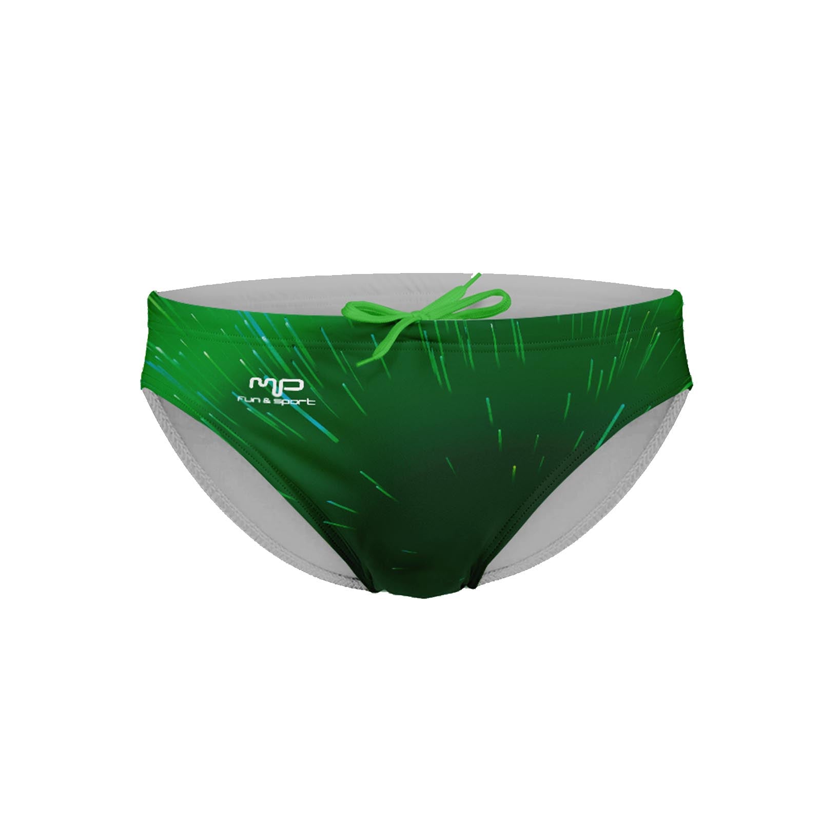 Slip nuoto in sublimazione con vita bassa e cuciture rinforzate. Foderato fronte retro. Piattina da 6 mm per la regolazione.