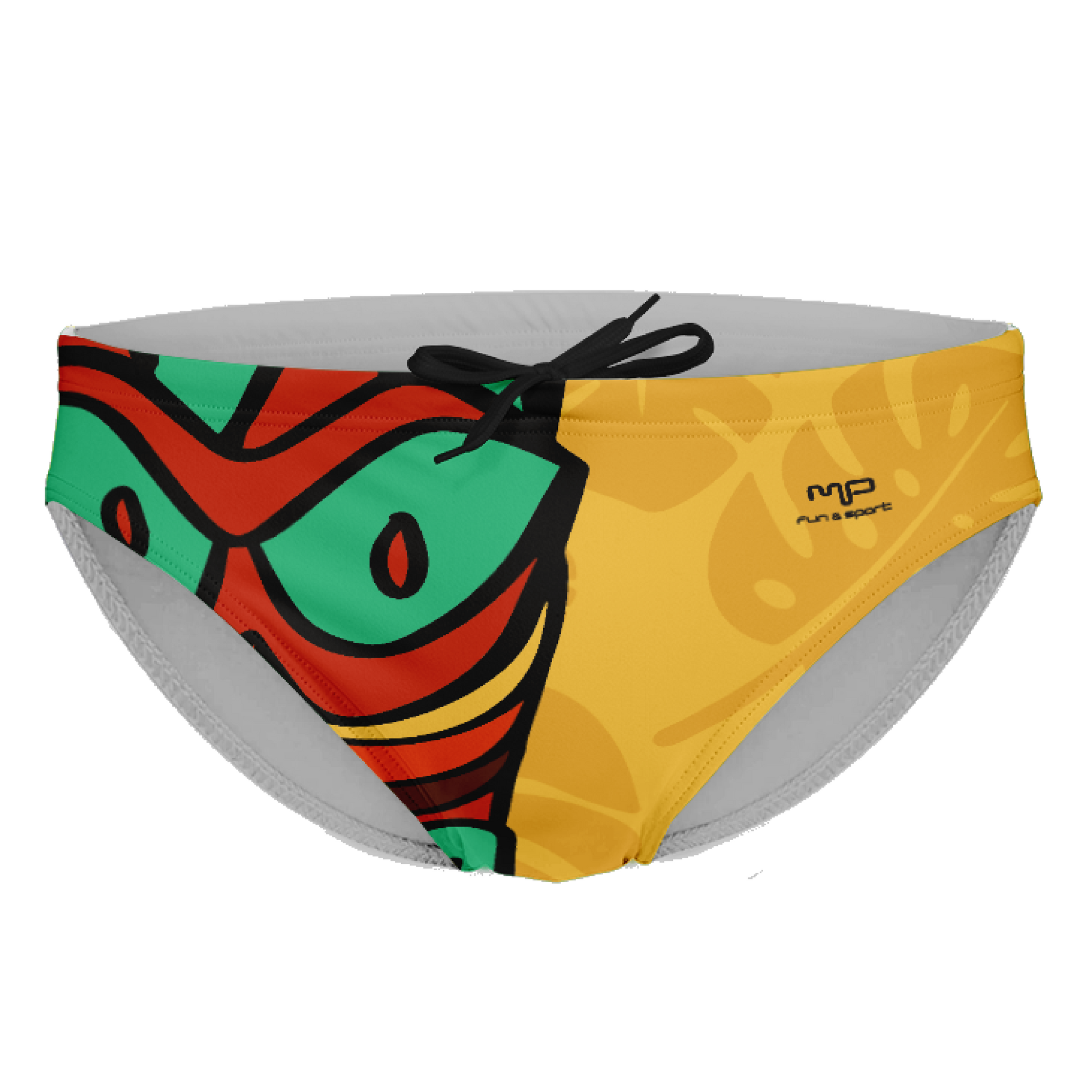 Slip nuoto in sublimazione con vita bassa e cuciture rinforzate. Foderato fronte retro. Piattina da 6 mm per la regolazione.