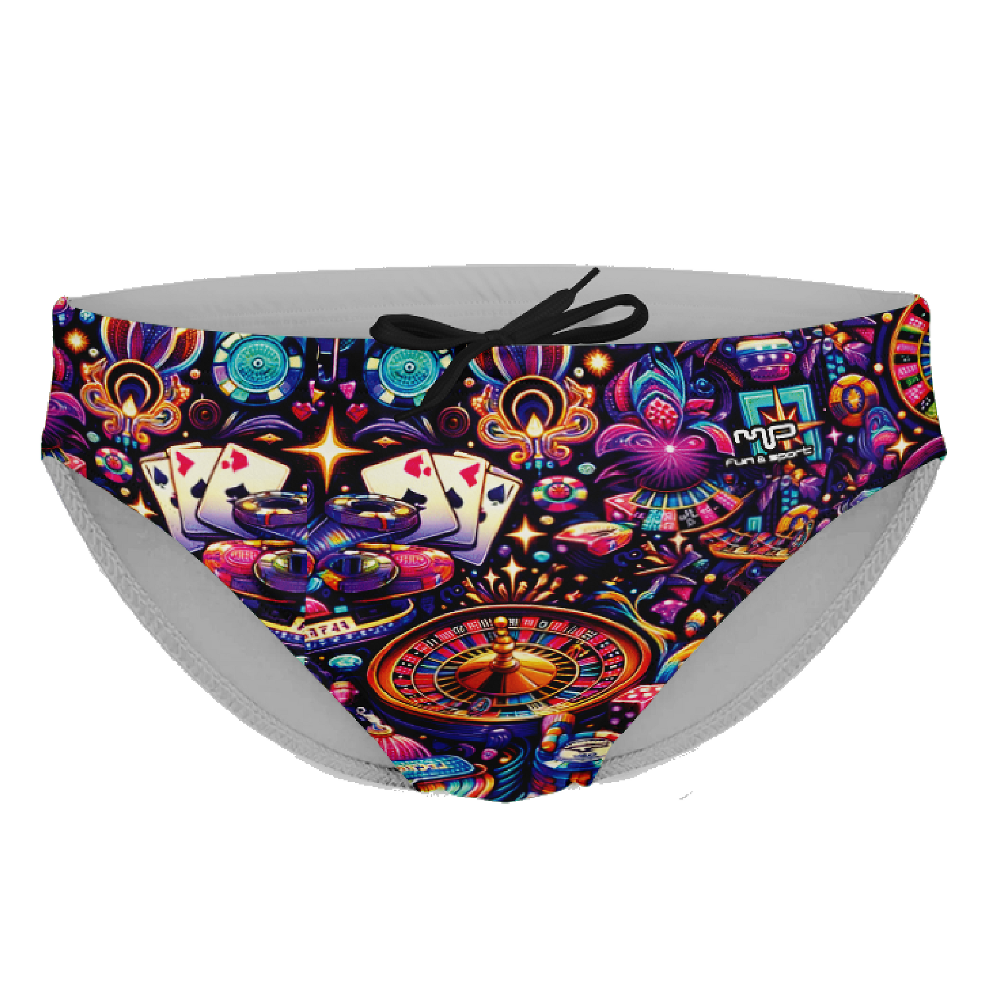Slip nuoto in sublimazione con vita bassa e cuciture rinforzate. Foderato fronte retro. Piattina da 6 mm per la regolazione.
