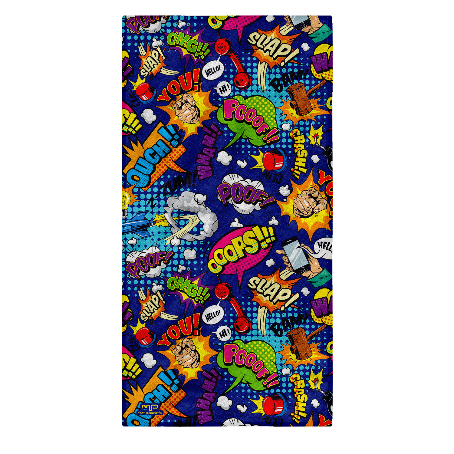 Telo 80×160cm. Lato interno in cotone non stampato. Lato esterno in poliestere stampato. La trama molto fitta del poliestere garantisce colori molto vivi. Rifinito con cimosa.