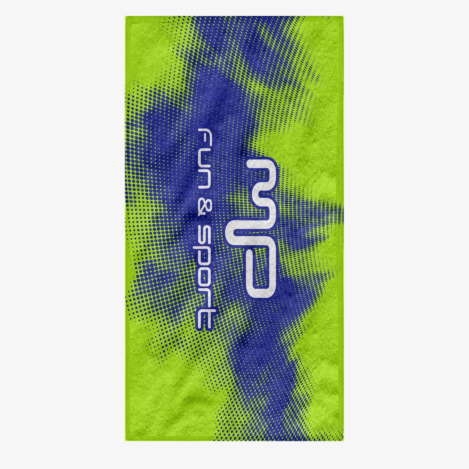 Telo 80×160cm. Lato interno in cotone non stampato. Lato esterno in poliestere stampato in colorazioni Fluo. La trama molto fitta del poliestere garantisce colori molto vivi. Rifinito con cimosa.