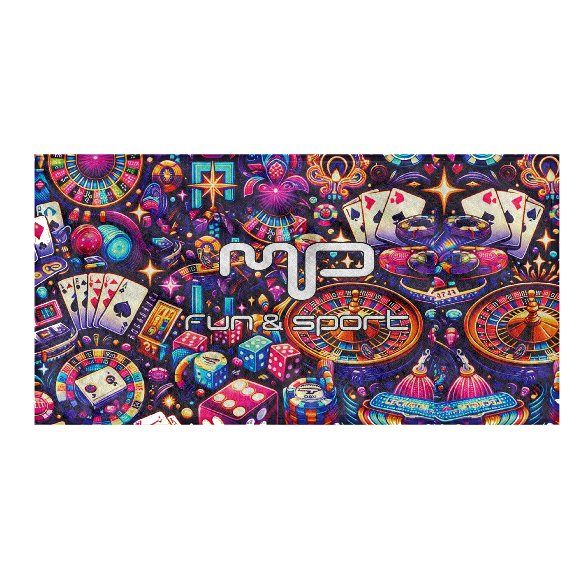 Telo 80×160cm. Lato interno in cotone non stampato. Lato esterno in poliestere stampato. La trama molto fitta del poliestere garantisce colori molto vivi. Rifinito con cimosa.